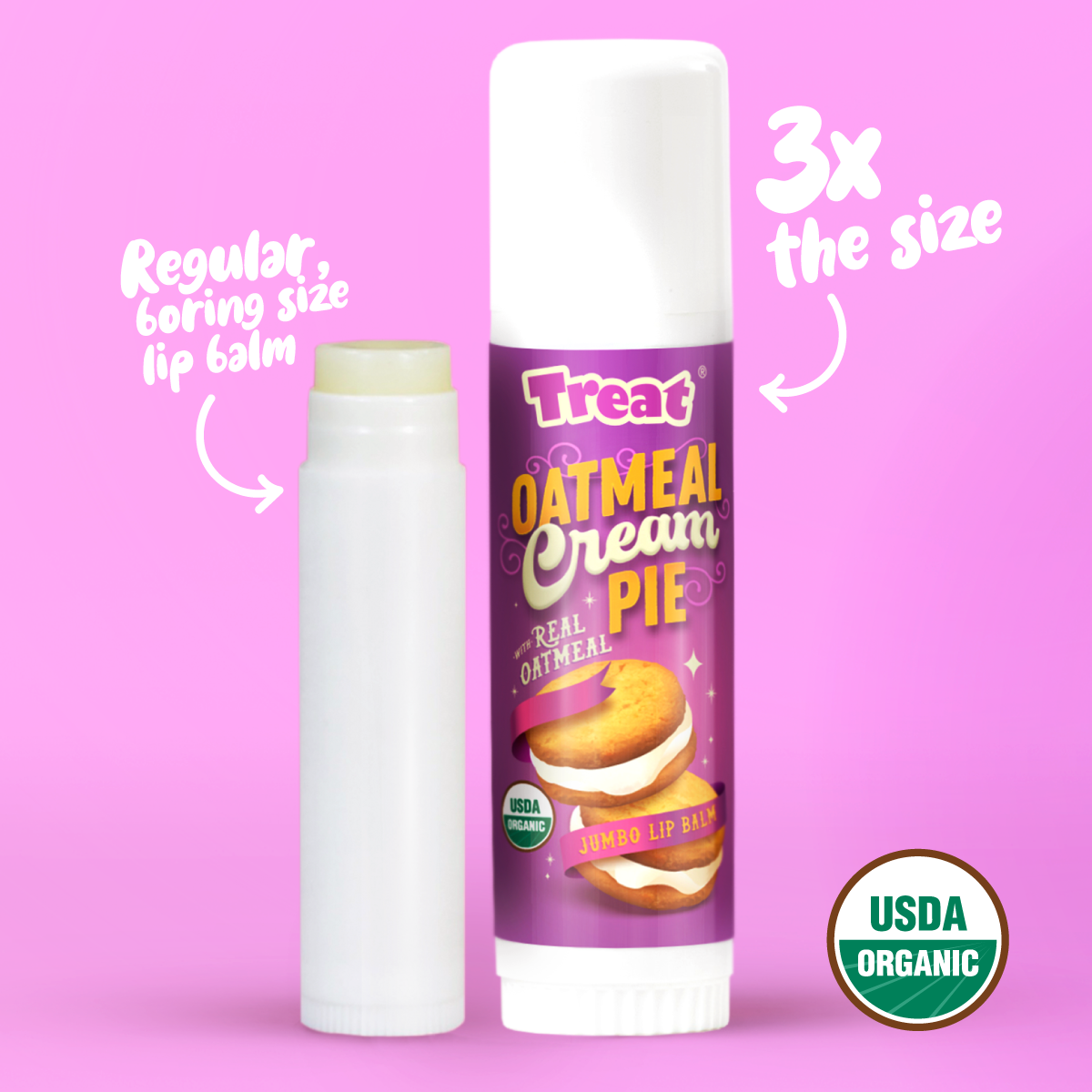 Regular price $16.99Regular priceUnit price / perSale price $16.99Oatmeal Cream Pie Jumbo Organic Lip Balm with Colloidal Oatmeal