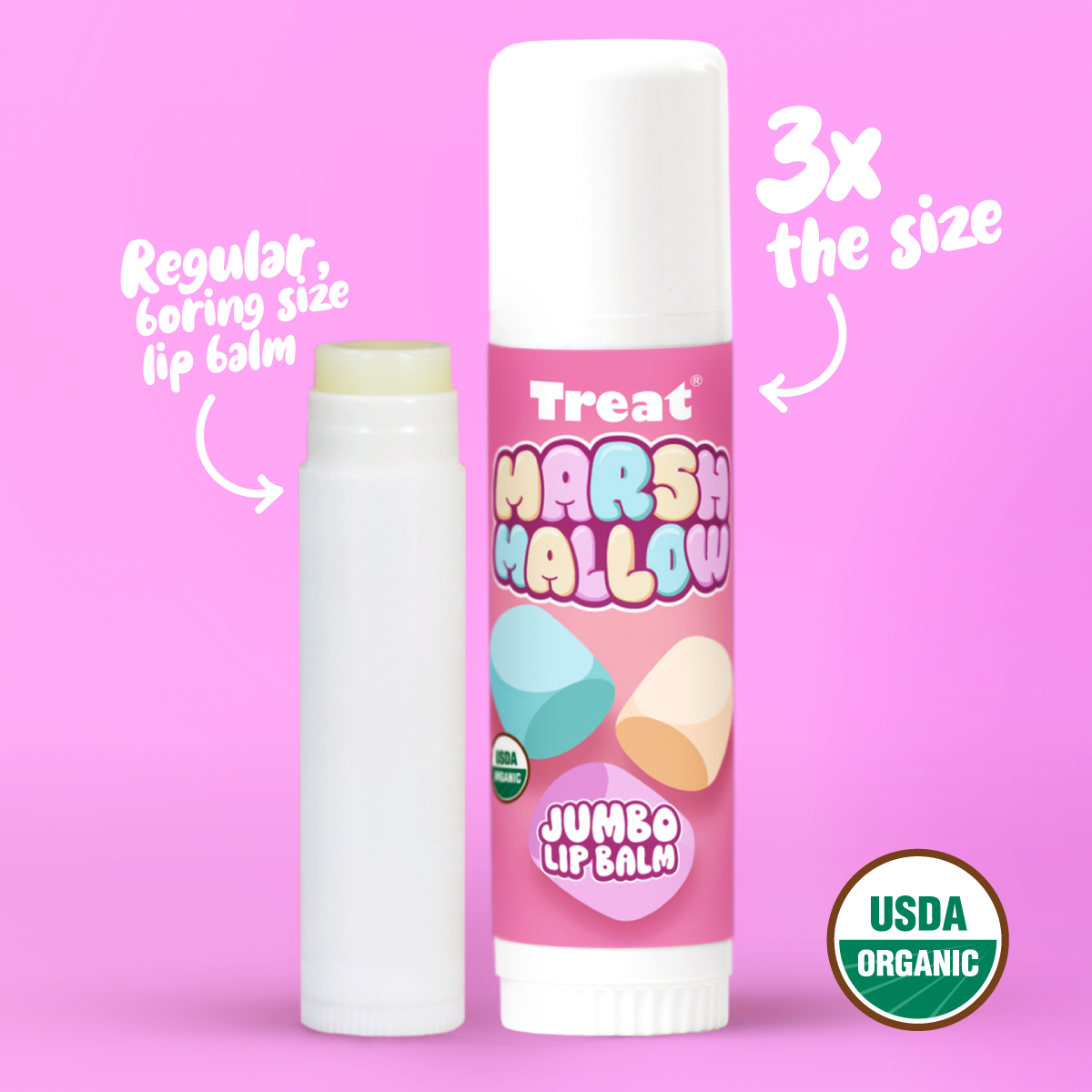 Our Marshmallow lip balms are 3X the size of regular balms.