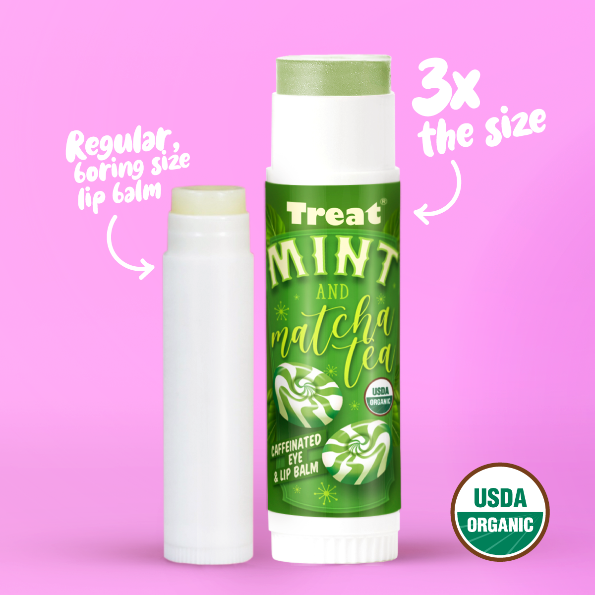 Our Mint & Matcha Jumbo Balm is 3X the size of regular balms — more moisture, more mint, more magic.
